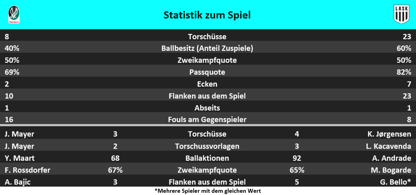 Der LASK traf in dieser Saison der ADMIRAL Bundesliga 12-mal Aluminium, Liga-Höchstwert. Die Hälfte dieser Aluminiumtreffer waren gegen die SV Oberbank Ried (6), vier davon im Hinspiel und zwei in diesem Spiel.